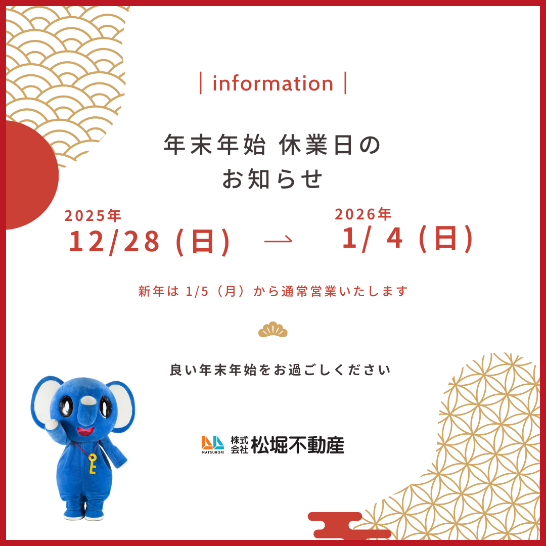 【年末年始の休業日のお知らせ】